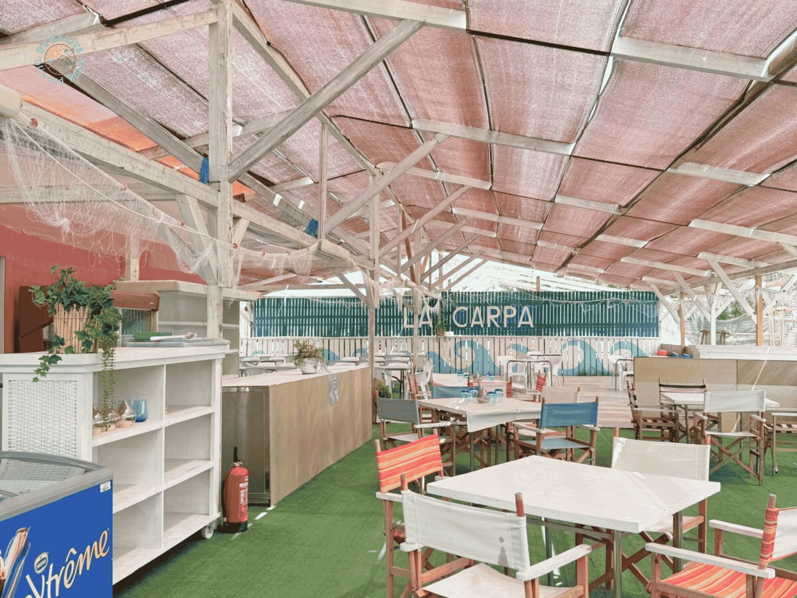 Lugar perfecto para descansar, para comer y beber y también se ocupan de los niños 🥳😍El mar está detrás de las dunas y hay piscina!!