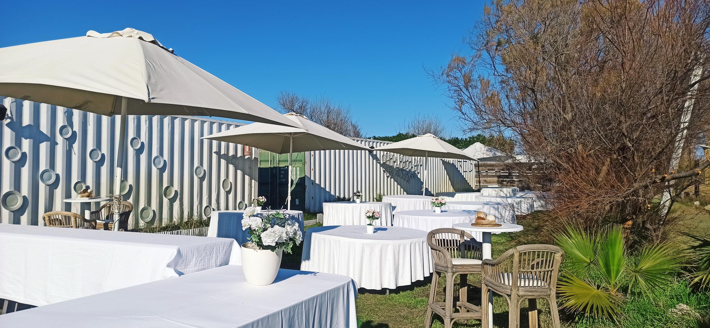 Disfruta de 300 m² de zona privilegiada, semi privada dentro del complejo, donde la sombra natural de los tamarindos y el ambiente playero se fusionan. Ideal para eventos elegantes, reuniones empresariales, cócteles al atardecer, con capacidad hasta 120 personas sentadas.
